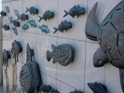 天気もよく、親水公園はけっこうな人出でした。みなさんベンチに腰掛けて海を見たり、桜を見たり。