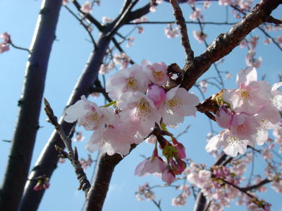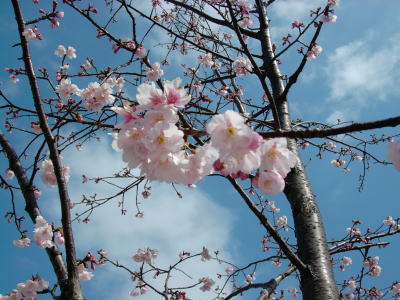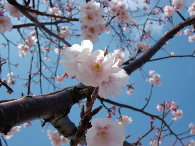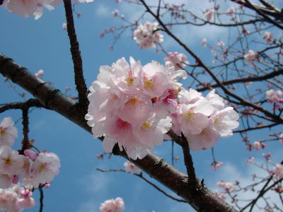 メジロが桜の蜜を盛んに吸っていました。(左下)