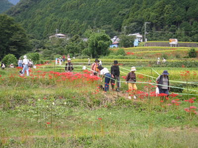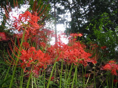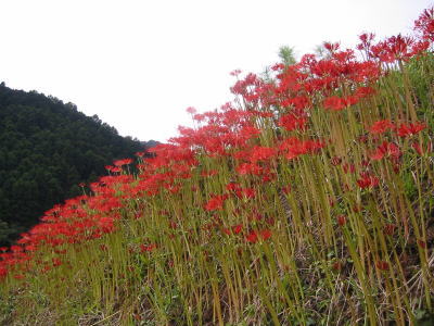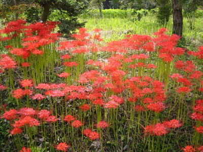 東名の厚木インターを降り、日向薬師に向かって進んでいくと、あちこちにヒガンバナの群落が見えてきました。