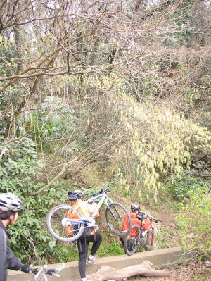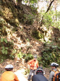 | 今日のエントリー地点はここ。 MTBを担いで 30メートルくらいの急斜面を上ります |