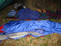 夜は長袖シャツの上に薄いフリースを羽織っても寒いくらいでしたが、用意していった「3シーズン用羽毛シュラフ」+「シュラフカバー」の威力はすさまじく、たいへん暖かく眠ることができました。