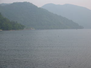 ホテルにチェックインした後、湖畔を散歩する。その間もときどき雷の音がしていた。