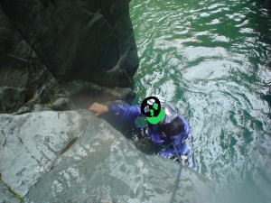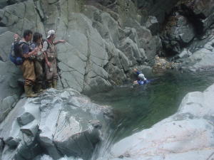 ボルダリングの練習をしたりしながらゆっくり進んだが、大きなゴルジュでとうとう追いついた。