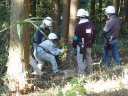 左下:実習でのこぎりを使うおねーさん。