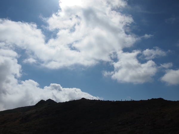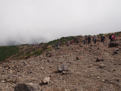 と連れの男性に言っている。なんだろうと振り向くと、おお!登山者が列をなして登ってくる。すごい人だ。