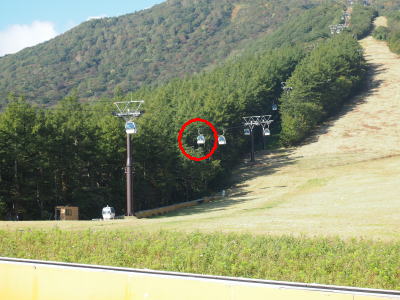 しばらくじっと観察していると、山頂の方から先頭のゴンドラが降りてきた。