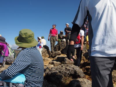 しかも大して広くない山頂で、お弁当を広げる人、お湯を沸かしてカップラーメンを作る人、何やら叫ぶ人などがいて、見ようによっては営業第3部の忘年会旅行である。