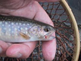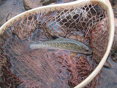 前に来た時もそうだったのですが、このブルックトラウト(カワマス)は平気で人の足元でライズしたりしますね。湯川という場所の特殊性がそうさせるのか、もともと脳が壊れているのかわかりませんが、無用心なヤツです。