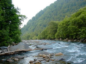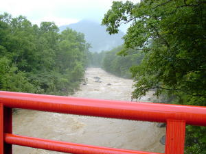 | こんな濁流に! | 桧枝岐の夏の雪まつり |