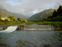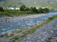 | 湯沢の町 | 登川。 この辺は川岸が公園になっている ところが多く、入渓は楽。 フライ向きの川です。 |