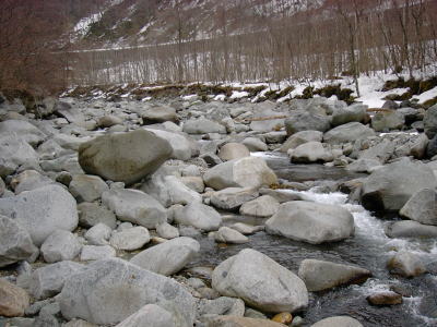 今年は暖かいために川原に雪がありません。前回来た時はみっしりと雪が積もっており、ものすごい風が吹きました。