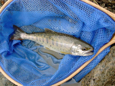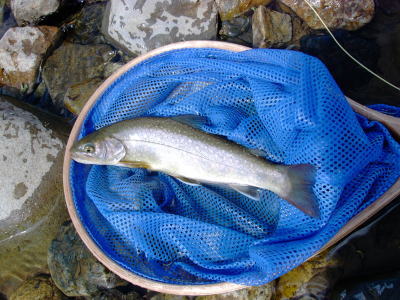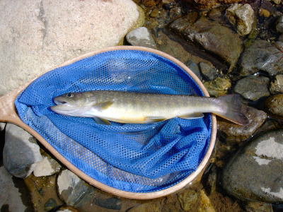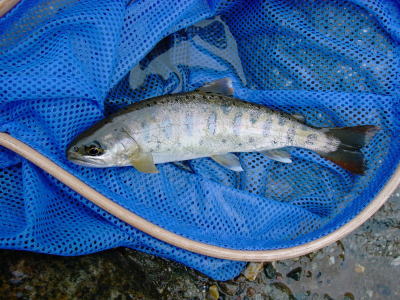 フライをユスリカのピューパに変えてみました。すると小さいですがイワナが釣れました。
