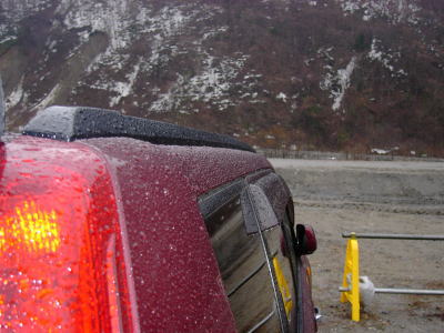 片付けて車を走らせ始めたら雪になりました。