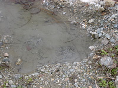 | 道の脇から温泉が・・・? | 上流部は渓相もよく人も少ないです が・・・ |