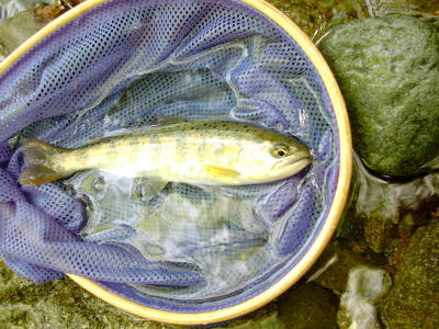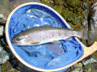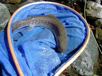 このイワナは白泡横の岩のぎりぎりでヒットしました。
