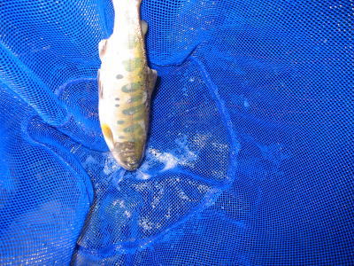 しかしフライが見えなくなるまで釣り続け、ブラウントラウトとヤマメを取ることができました。
