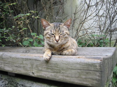 夕方この場所に来ると、さっきのネコがぽつんと座っています。単なるノラネコだったんですね。
