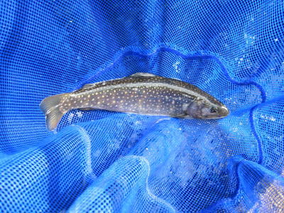 上げてみるとイワナです。これでニジマス、ヤマメ、イワナ。3魚種獲得です。