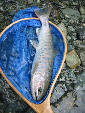 私はアウトリガースタイルでニジマスを釣ります。ブラウンやイワナは来ませんねえ。