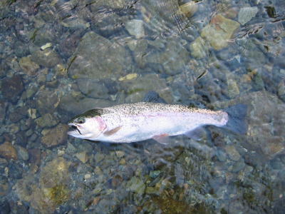 | ニジマスは何匹か釣りましたが コンディションが良く、引きも強かったです。 グラスロッドだと遊ばせるとばれてしまいました。 |