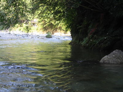 計ってみると水温は18度。しかも昨日までの雨で増水しています。