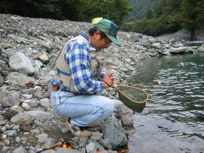 初めてとはいいながらさすがフジノさん。30分ほどでそれなりにターンオーバーするようになり、1時間後にはドライフライにヒット!