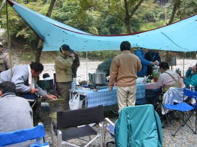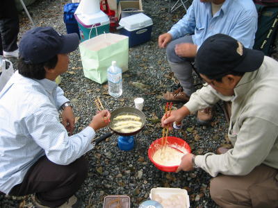 カディスニンフさんがばっちり用意してくれた鍋を食べ、愚鱒さんたちが作るてんぷらを食べ、飲んで騒いで。