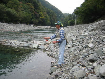 フジノさんがフライはやったことがないということで、一緒に釣りながら教えて差し上げることに。