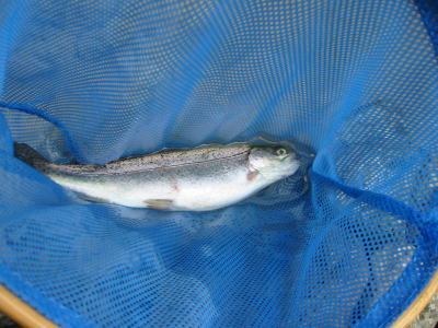 今度はうまくラインを手繰り、フライ初日で釣り上げてしまいました。