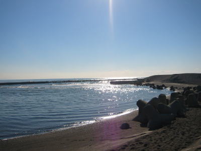 やっと花水川に着き、河口そばの駐車場にサーファーに混じって車をとめます。