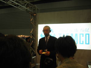 一美さんとシマノのブースに行きSCLを試投します。試投してみると適度に張りもあり、距離も出せるしコントロールもつけやすい。