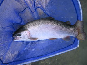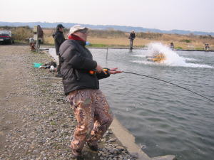 | ヒレは擦り切れているものの きれいな感じ魚が多い。 とにかく重く、走られると回りの人に少々迷惑が。 タモ網と魚籠は貸してくれます。 |