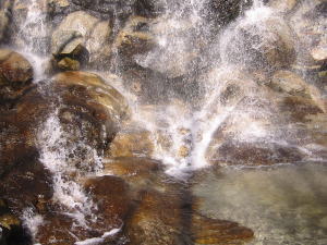 目的の沢に到着。ポリタンクを覗いてみると、ヤマメは元気です。
