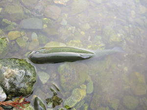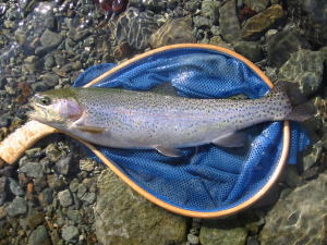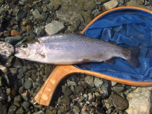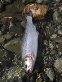 | カディスニンフさんの目の前で 釣り上げられるという 快挙を成し遂げたニジマス。 偉い! |