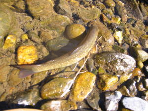 | ドライフライでも釣れました。 この淵は時計回りに水が流れていて、 フライを流すのがなかなか難しかったです。 |