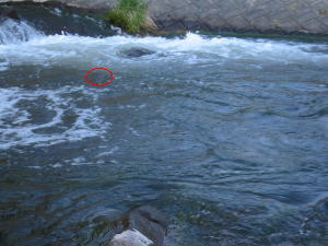 落ち込みの下の強い流れと流れの間、ここにドライフライを叩き込み、必死でナチュラルドリフトのマネ。