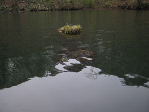 木にぶつかったのかな?と思って強く漕いでみましたが、ボートはその場で回転するだけです。