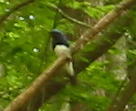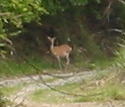 | 帰りの林道で オオルリ(ヒタキ科の鳥)を 初めて見ました。 オス2羽、メス1羽。 きれいな鳥です。 右は林道で何か調べものをしていたシカ。 |