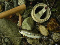 そろそろテレストリアル(陸生昆虫)パターンも良いかなと思いましたが、大き目のフライには反応が悪く、釣れたのはハッチに合わせた#15〜#17位のパラシュートパターンでした。