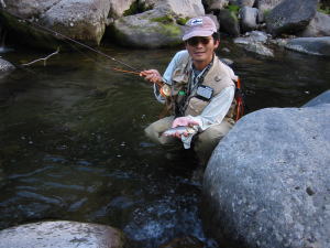 一美さんから「いいヤマメですね」とほめられ、得意得意。