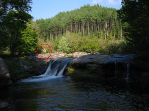 | 一美さんはツ抜け。 右は途中にあった大淵。丸の中が一美さん! |