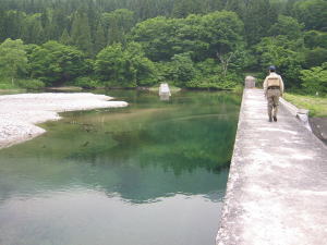 水温を計ってみると7度くらいしかありません。回りの山の頂には雪も残っています。ちょっと時期が早かったようです。