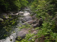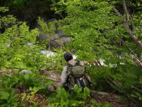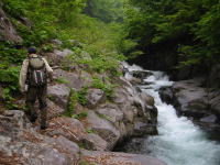 BOSSさんと相談し、この沢は断念。引き返して清津川本流をやることにしました。