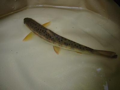 1時間以上やって1匹。小さいですがきれいなアマゴでした。この川は放流している様子はないので、天然ものと思います。