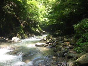 道に多少迷いつつ、約2時間で到着。なんだかとんでもない山の中ですが、渓相は比較的穏やかでした。