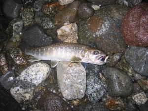 一美さんは尺近いイワナを釣りました。なぜ私には来ないんだー、と騒ぎつつ今日の釣りは終了です。