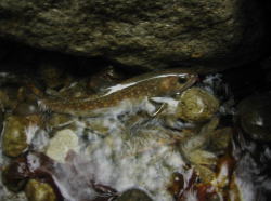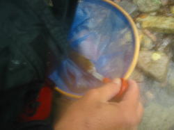 大きな石がある回りを丹念に流しますが、魚は出てきません。