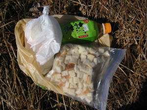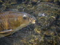 パンを川に撒いてコイを狙います。風が強いのでフライをうまく流せません。