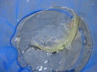 そこでティペットにマーカーを付けて引っぱってみました。1匹釣れましたが、どうもこの方法では効率がよくないようです。