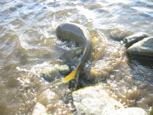 おじいさんもパンをエサに釣っているとのこと。大きいのも上がったそうです。